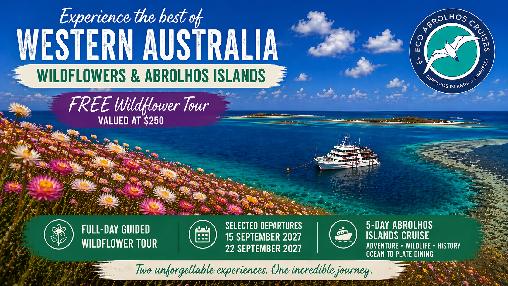 Travelling solo doesn’t mean travelling alone. Eco Abrolhos Cruises offers private solo cabins with private ensuites, so independent travellers can enjoy the Kimberley or the Abrolhos Islands in comfort without sharing a cabin.
