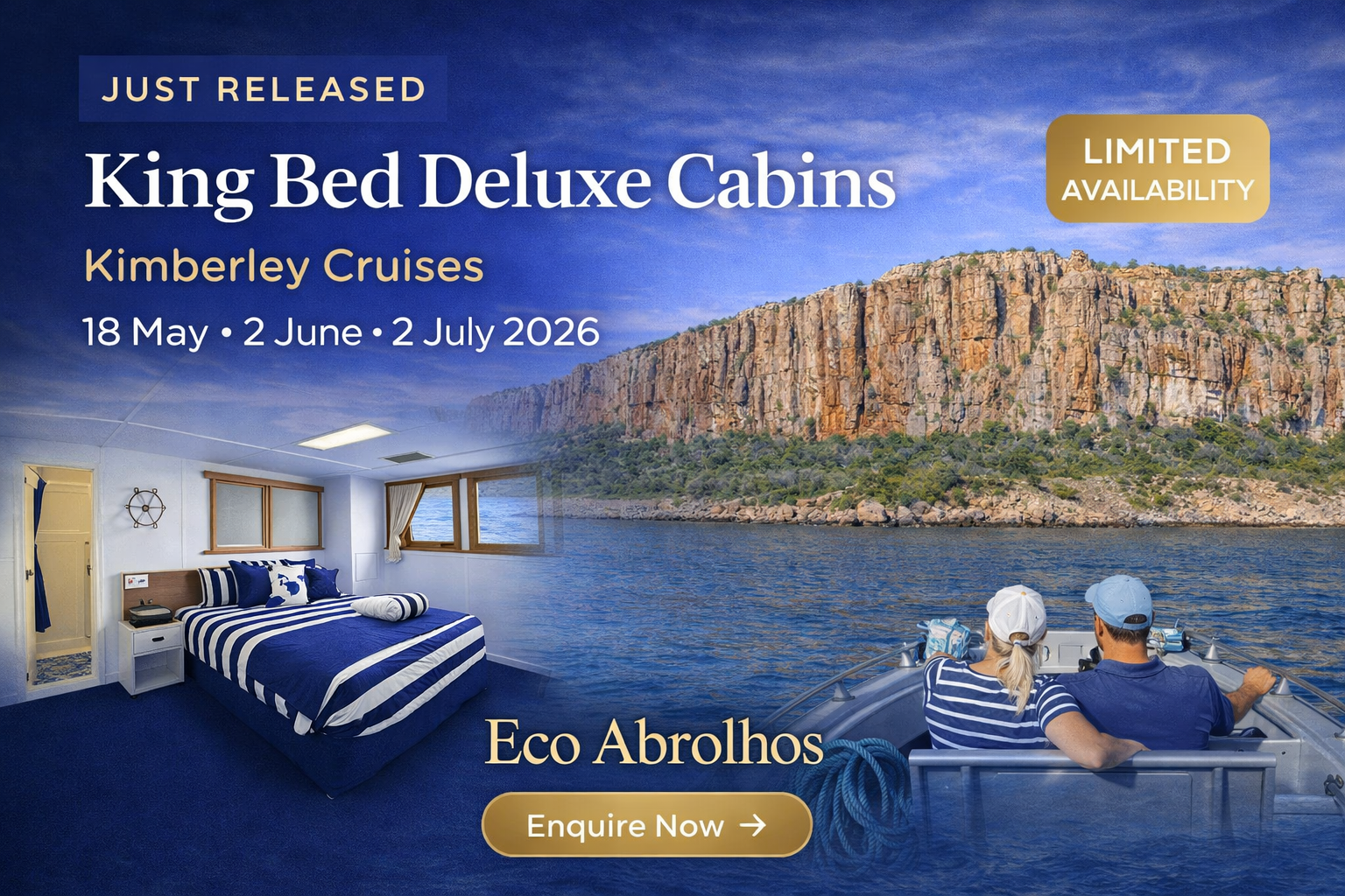 Solo cabins are limited on each voyage and 2026 departures are almost sold out, with only one Kimberley solo cabin remaining. Secure your place now or enquire early for 2027 expeditions.