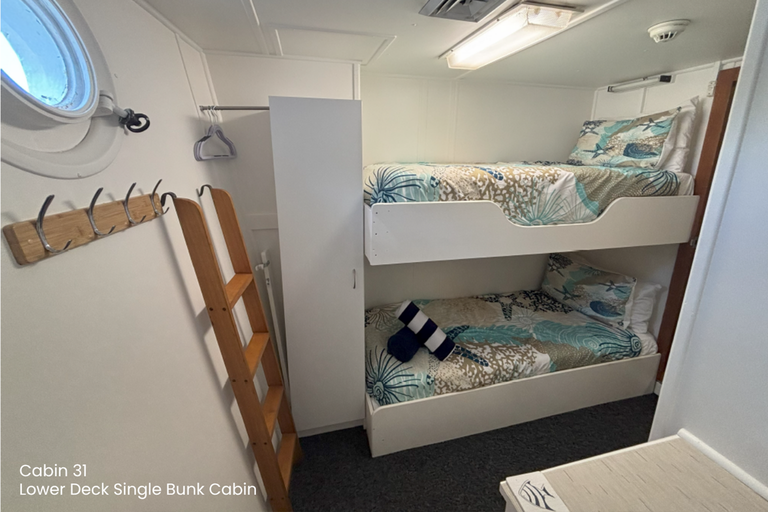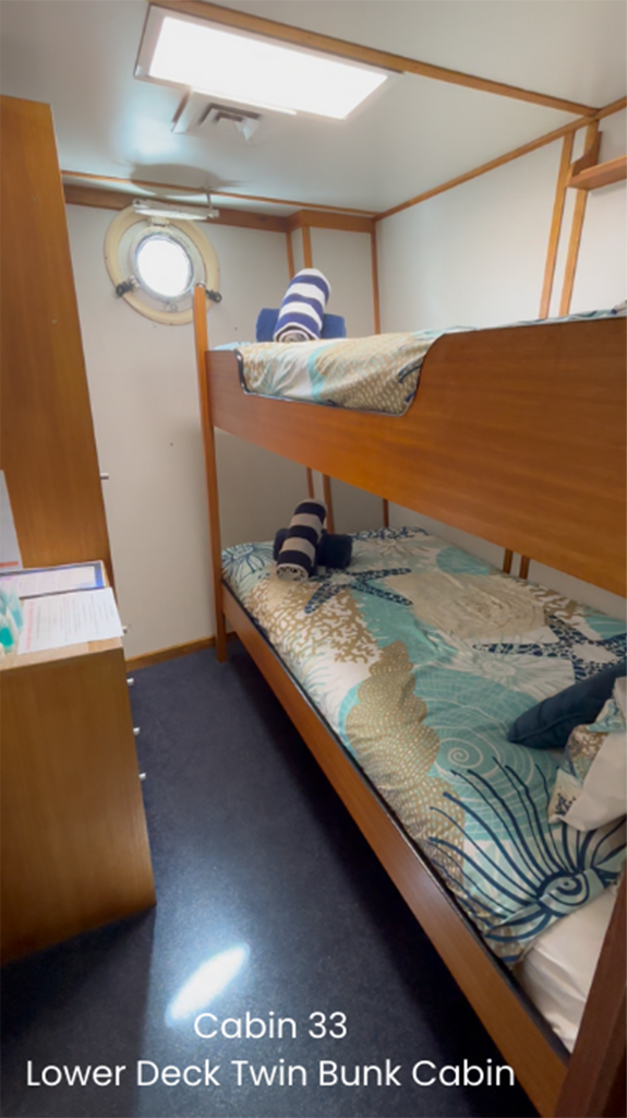 Eco Abrolhos offers a range of comfortable cabins to suit all budgets, each featuring a private ensuite, ensuring every guest enjoys both privacy and convenience while exploring stunning destinations.